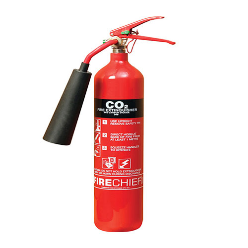 Carbon Dioxide fire extinguishers extinguish fire by taking away the oxygen element of the fire triangle and also be removing the heat with a very cold discharge. Carbon dioxide can be used on Class B & C fires. They are usually ineffective on Class A fires.